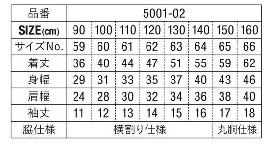 Tシャツの規格は5001-02のみとなります。